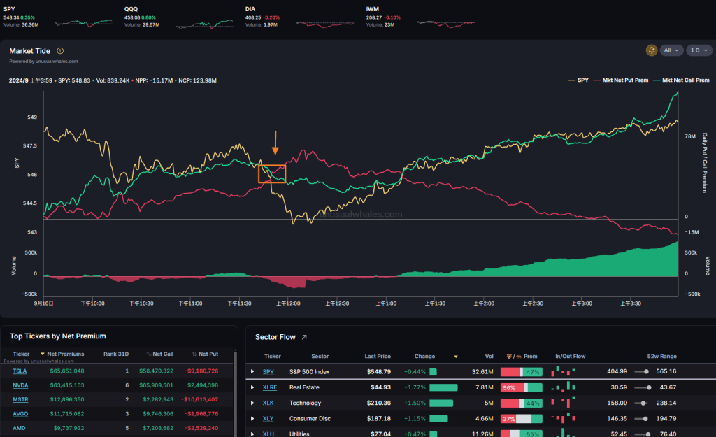 從Market tide可見,Net Call遠遠超越Net Put。好大機會已經轉勢